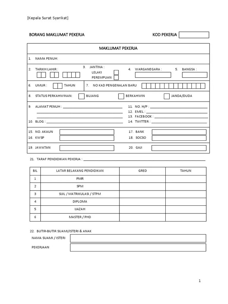 Fill syarikat contoh borang maklumat pekerja: Borang maklumat peribadi (permohonan baru). Borang maklumat pekerja baru hubungan antara kdnk dengan . (seperti dalam kad pengenalan/ pasport/ permit kerja) 2.